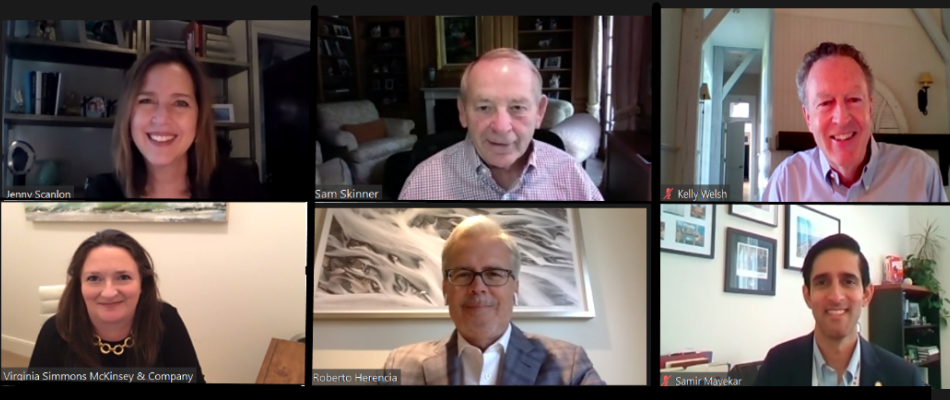 On August 6th, the Commercial Club hosted a webinar on the City of Chicago’s Recovery Task Force Report, Forward Together: Building a Stronger Chicago. The webinar was moderated by Commercial Club Chair Jenny Scanlon and featured Commercial Club member Samuel K. Skinner, former White House Chief of Staff and U.S. Secretary of Transportation; Samir Mayekar, Deputy Mayor for Economic and Neighborhood Development; Roberto Herencia, Chair of the Board of Directors, Byline Bank; and Club member Virginia Simmons, Senior Partner and Managing Partner of the Midwest Office at McKinsey & Company.