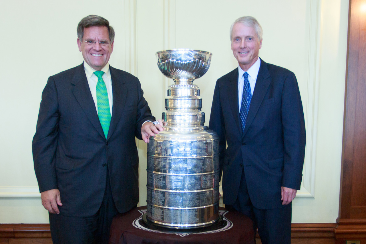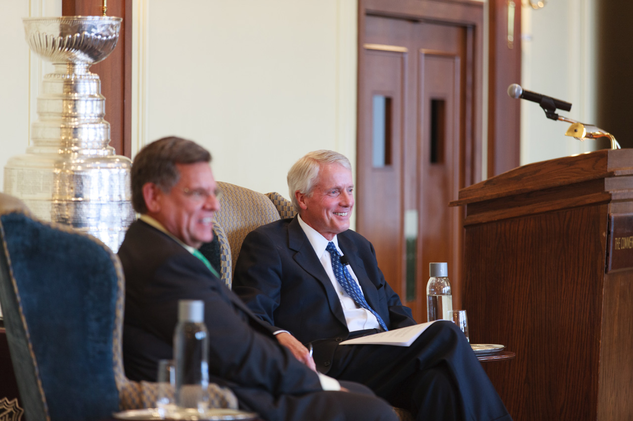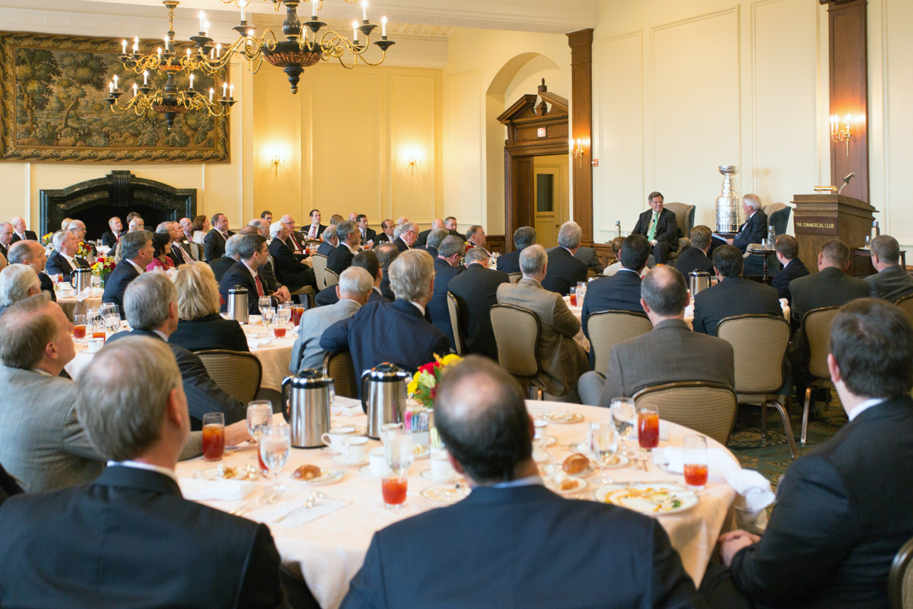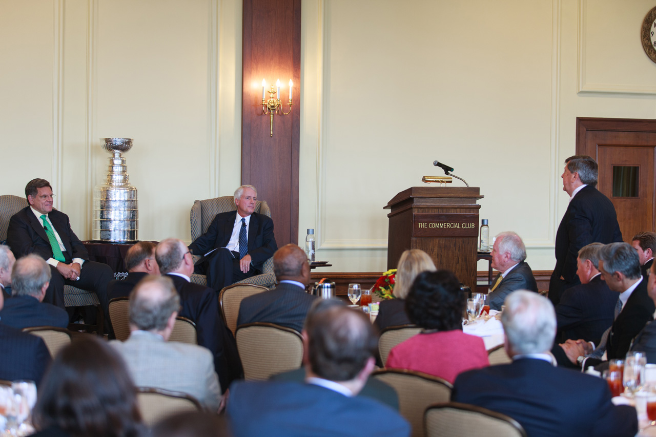 Commercial Club member and Chicago Blackhawks chairman Rocky Wirtz brought a special friend to the October luncheon and spoke about the business behind the sport.
